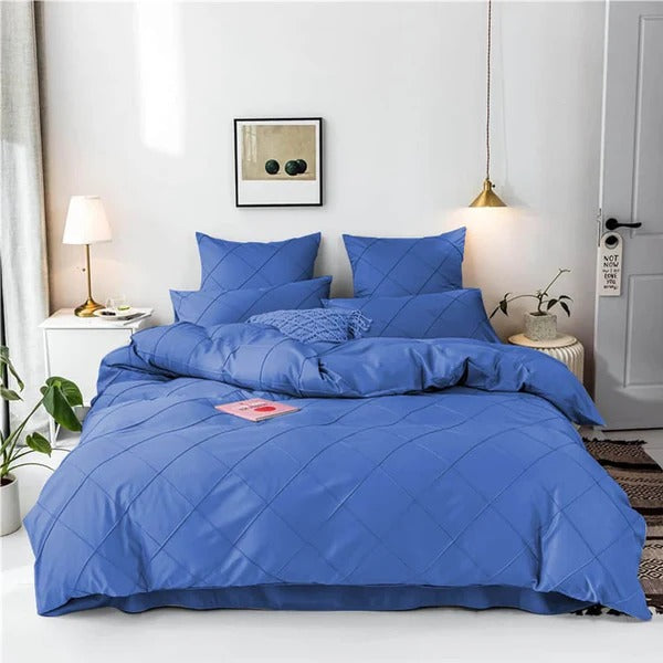 Cross Pleated Duvet Set - Blue