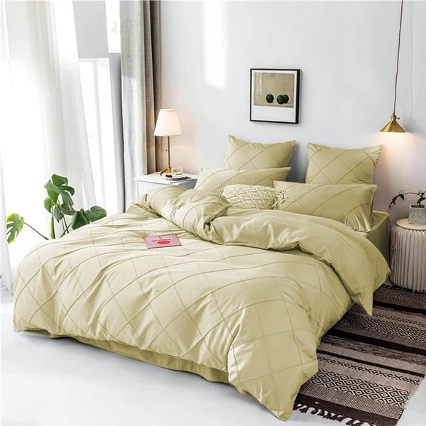 Our Cross Pleated Duvet Set brings both comfort and style to your bedroom, offering soft, year-round comfort with a design that’s perfect for any season.