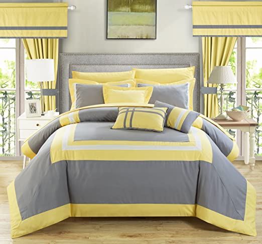Embellish Patch Pleated Duvet Set - Yellow & Grey