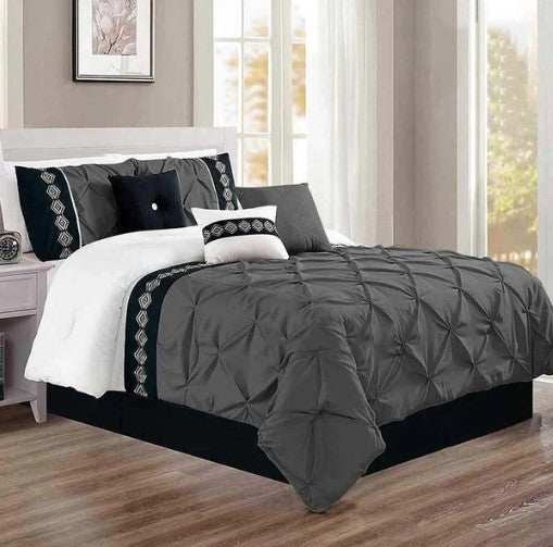 Embroidered Pintuck Duvet Set - Grey