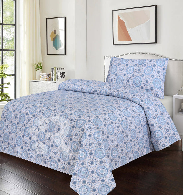 Enhance your bedroom with this premium single bedsheet, crafted from a soft cotton blend. The stylish print adds a vibrant touch to your space, offering both comfort and elegance.